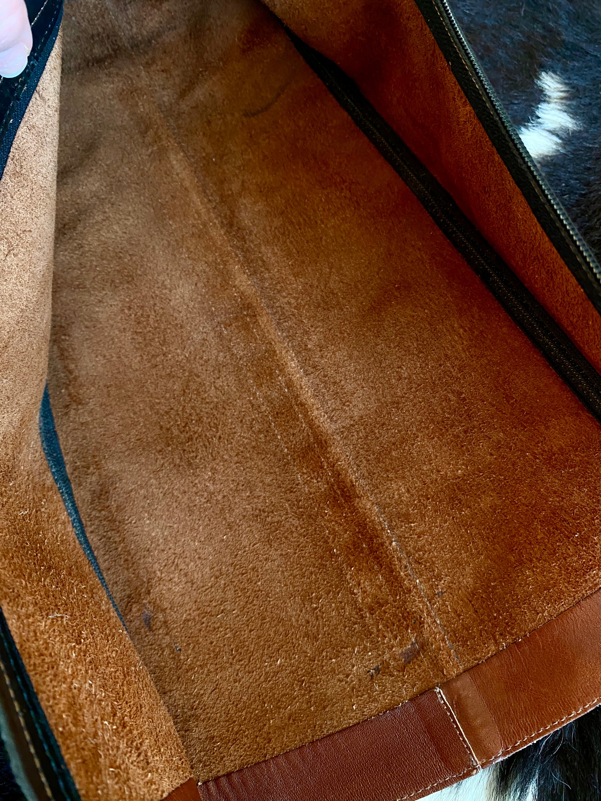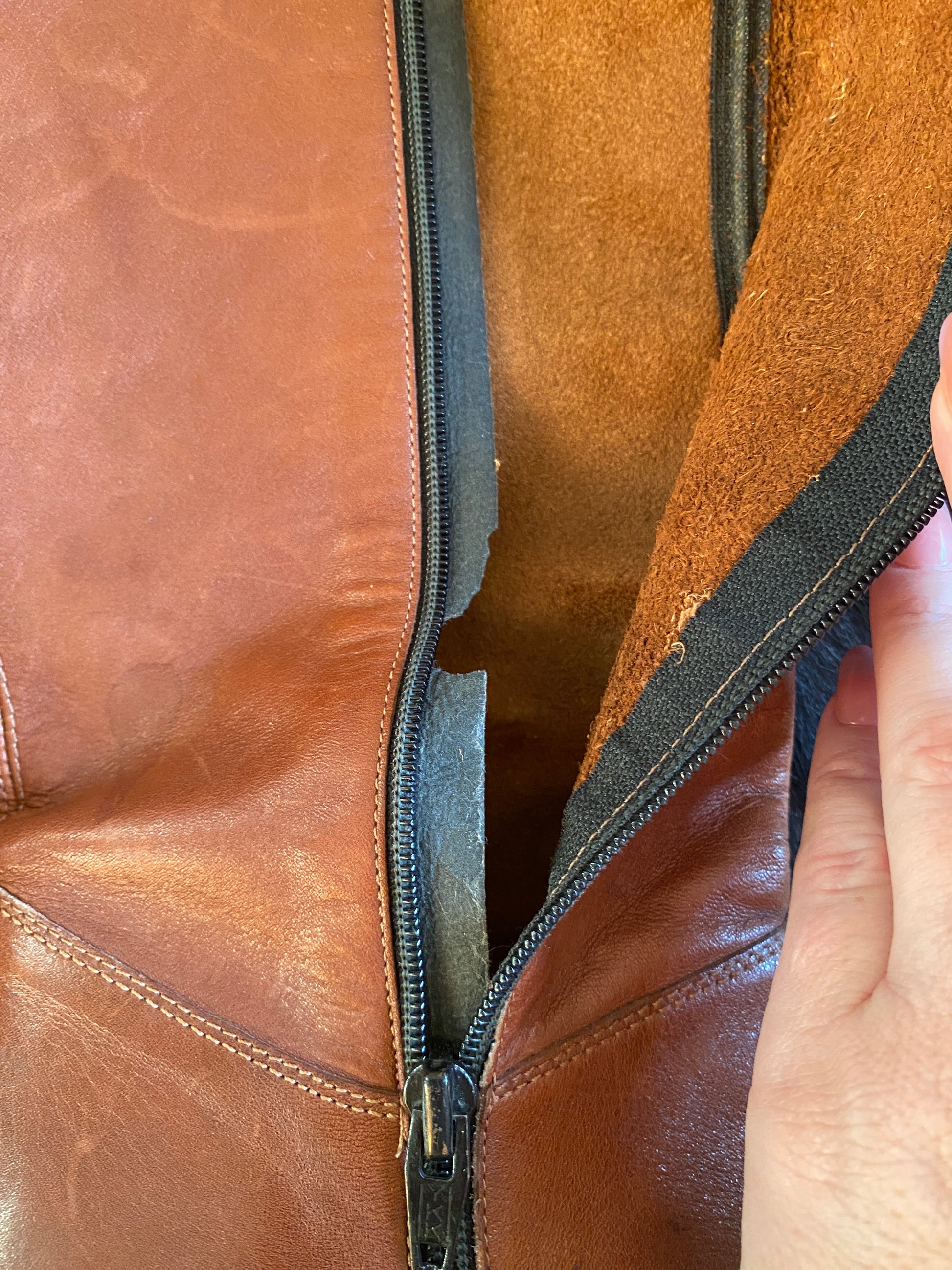 Vintage 1970's knee high boots in a pretty cognac brown color. 100% genuine leather shaft comes to just under the knee and has a solid structure fit, no real slouch to them. A slim strip of leather on each outer shaft has a vertical woven design. Inner shaft has a full length zipper.