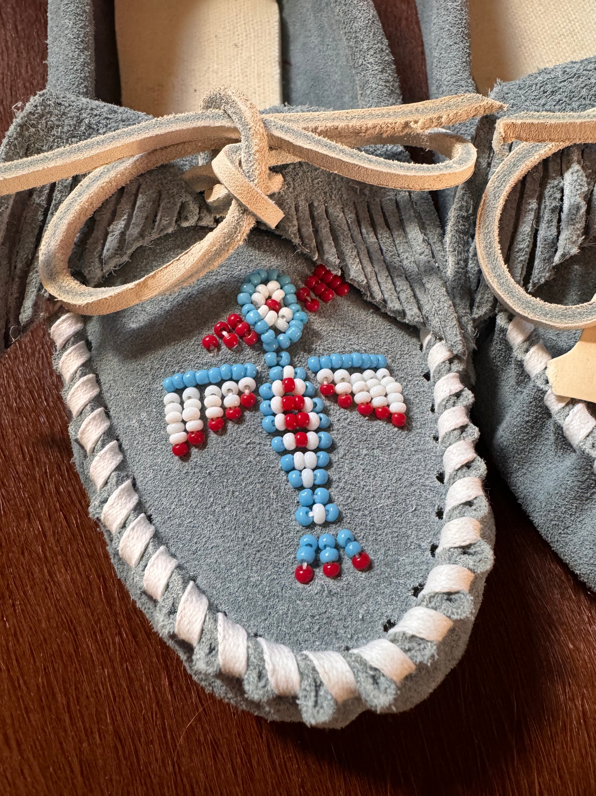 Hand-Made Moccasins, Baby Blue Leather | Beaded Thunderbird | Cherokee Native American | 6
